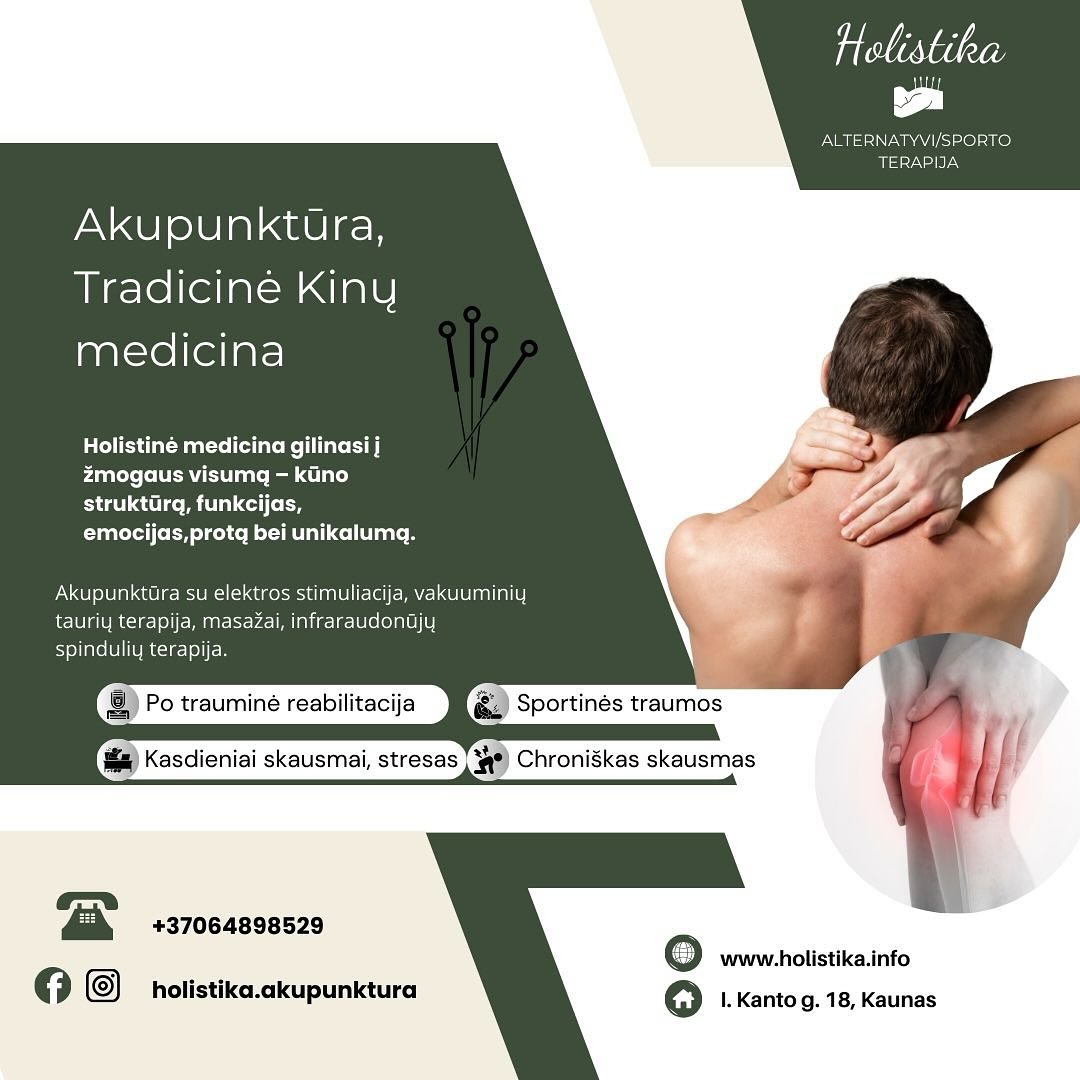 "Holistika" rūpinasi Jūsų bendrąja sveikata, o ne tik skausmo priežastimi, specializuojasi į neinvazinę terapiją, pasitelkiant Tradicinės Kinų medicinos pagrindus.